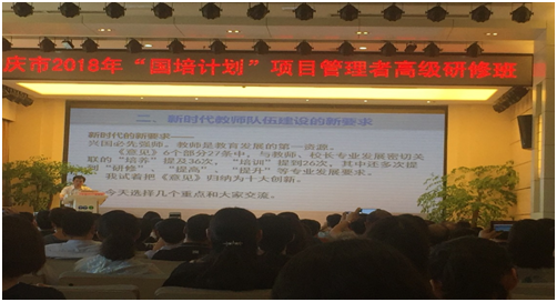 在高研班上,重慶市教育委員會(huì)李源田副巡視員就《關(guān)于全面化新時(shí)代教師隊(duì)伍建設(shè)改革意見(jiàn)》進(jìn)行了詳細(xì)解讀。主要提出了著力提升思想政治素質(zhì),全面加強(qiáng)師德師風(fēng)隊(duì)伍建設(shè)的意見(jiàn),同時(shí),強(qiáng)調(diào)了加強(qiáng)學(xué)科學(xué)術(shù)研究,提升教師教育學(xué)專業(yè)水準(zhǔn)的重要性。也對(duì)重慶2010年—2017年的國(guó)培成果作出了高度的評(píng)價(jià)。