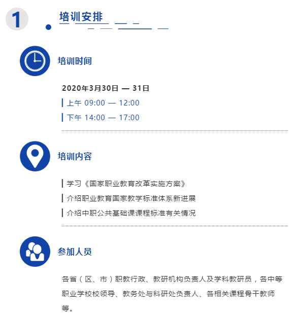 近期,教育部陸續(xù)頒布了中等職業(yè)學校思想政治、語文、歷史、數(shù)學、英語、信息技術(shù)、體育與健康、物理、化學、藝術(shù)10門公共基礎(chǔ)課的課程標準。為貫徹落實《國家職業(yè)教育改革實施方案》《關(guān)于加強和改進新形勢下大中小學教材建設(shè)的意見》,落實立德樹人根本任務(wù),深化中等職業(yè)學?!敖處煛⒔滩?、教法”改革,幫助廣大學校和教師更好地領(lǐng)會并掌握各科課程標準,決定開展中等職業(yè)學校10門公共基礎(chǔ)課課程標準培訓。