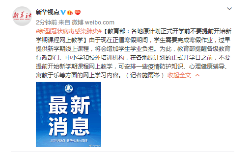 教育部:各地原計劃正式開學(xué)前不要提前開始新學(xué)期課程網(wǎng)上教學(xué)