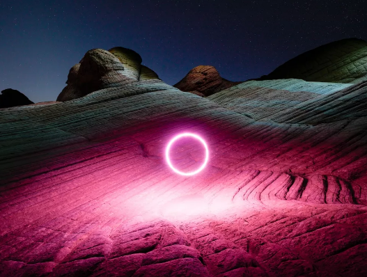 2020年,魯本·吳(Reuben Wu)的作品震驚了我們,后者發(fā)布了一系列他統(tǒng)稱為“光暴”的圖像。這些圖片以無人機(jī)為光源,在夜空中創(chuàng)造光暈和其他美麗、超凡脫俗的圖案(如上圖所示)。